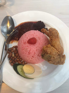 Nasik lemak sambal strawbery. Kalau dengar je strawbery tau dah kat mana kan. Cameron Highland la. Aku tak usik langsung sambal strawberi tu. Makan dengan sambal biasa je. Macam pelik plak rasa dia. Tapi nasik dia sedak laa.